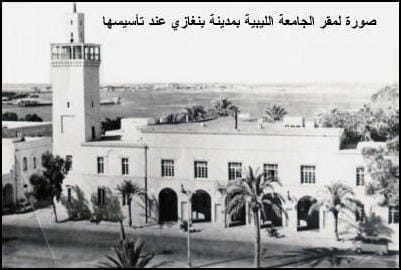 الجامعة الليبية هو الاسم السابق لأول جامعة في ليبيا تأسست في مدينة بنغازي في 15 ديسمبر 1955 وكانت أولى كلياتها كلية الآداب حيث ضمت واحد وثلاثين طالباً، وقبل ذلك التاريخ كان وفد حكومي ليبي قد زار مصر طالباً إعارة بعض الأساتذة العاملين في الجامعات المصرية للعمل في الجامعة الليبية،و قد وافقت الحكومة المصرية على هذا الطلب، بل وتعهدت بدفع مرتبات الأساتذة المعارين، ومن هؤلاء الأساتذة: الدكتور طه الحاجري "الأدب العربي"، والدكتور عبد الهادي شعيرة "التاريخ"،والدكتور عبد الهادي أبو ريدة "الفلسفة"، والدكتور عبد العزيز طريح شرف "الجغرافيا"، كما تعاقدت الجامعة الليبية مع الأستاذ ويليام كليلاند "اللغة الإنجليزية" للتدريس فيها، كما رشحت الحكومة الأمريكية فيما بعد الدكتور مجيد خدوري (عراقي) رئيس مركز دراسات الشرق الأوسط ليكون عميداً لكلية الآداب على نفقة الحكومة الأمريكية.